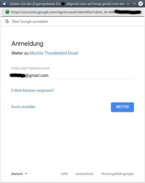 Seit ein paar Tagen werden von einem meiner beiden gmail Konten die mails von Thunderbird nicht mehr abgerufen und es erscheint eine Meldung, dass ich meine Zugangsdaten auf .... imap.gmail.com eingeben soll (Siehe screenshot).