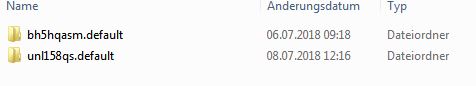Dein aktueller und aktiver Profilordner heißt "unl158qs.default", der zweite Ordner "xxx...... default" in "Profiles" wurde vorgestern (also noch bevor du dein Thema eröffnet hast) erstellt. Wie er zustande kam, darüber kann man nur spekulieren...