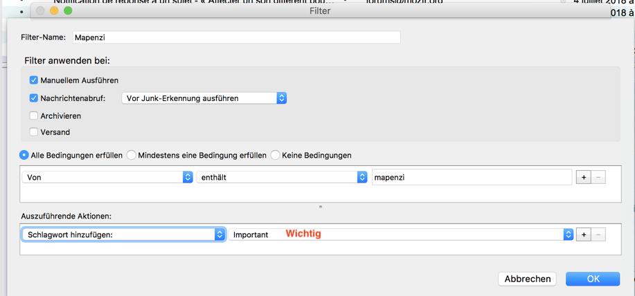 Wie kann ich Nachrichten von einem Bestimmten Absender oder bestimmer Inhalt im Betreff z.B. mit Roter Schrift markieren?