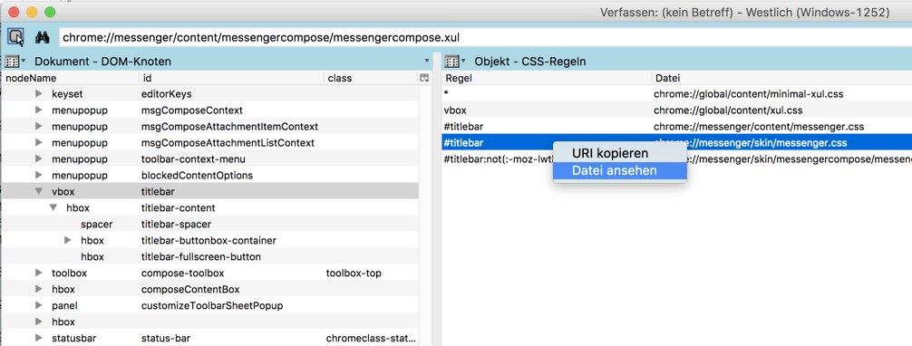 Kann mir jemand bitte den CSS Code nennen womit man im Verfassen Fenster die Titelbar ausblenden oder wenigstens die Hintergrundfarbe ändern kann