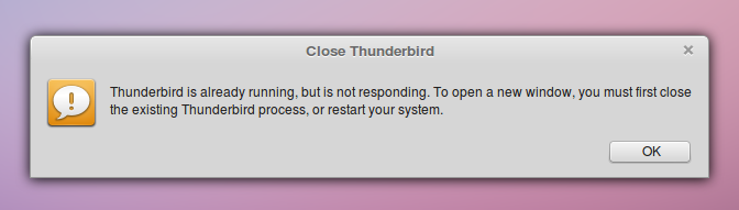 Zudem lässt sich Thunderbird nicht mehr vollständig schliessen. Nachdem das Fenster geschlossen wurde, bleibt der Prozess im Hintergrund laufen und ich muss das Programm von dort aus beenden und anschliessend neustarten.
