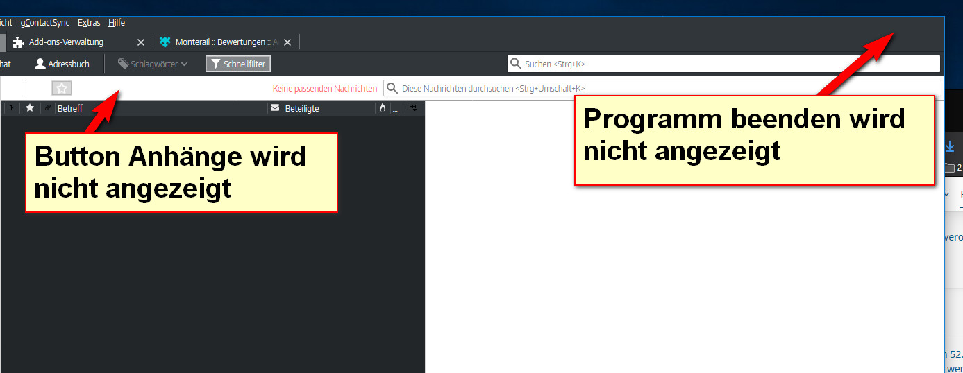 - Die Buttons für Anhänge sowie Programm beenden werden nicht angezeigt