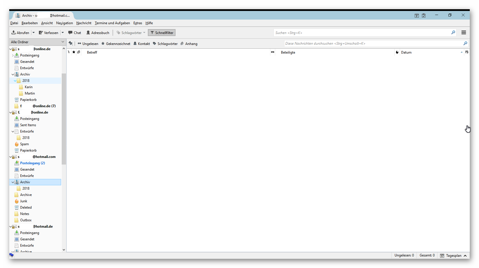 3. Teiweise werden bei den Microsoft-Konten Ordner (Archiv) doppelt aber in verschiedenen Versionen eingerichtet, auch hier hilft kein Löschen.