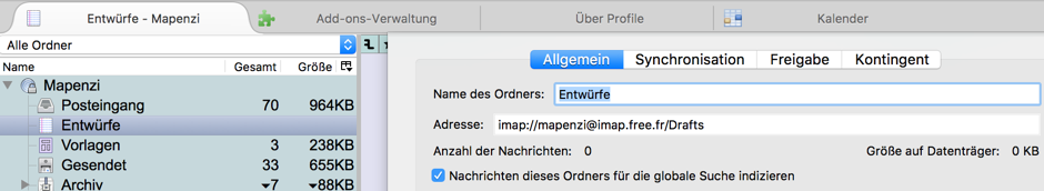 In meinem ersten Postfach werden die Ordner "Entwürfe" doppelt erstellt obwohl nur einer genutzt wird.