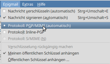 - S/MIME oder PGP: beides, PGP über Enigmail Version 2.0.8, gpg hat die Version 1.4.20