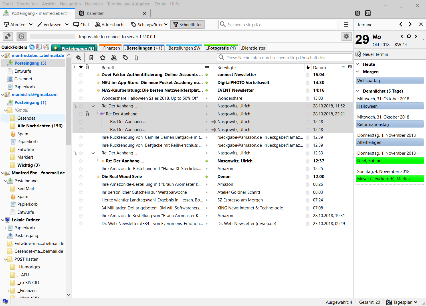 - Programm + Version: PC: TB 60.2.1 (32-Bit) / Tablet: Aqua Mail Pro 1.17.0-1328
