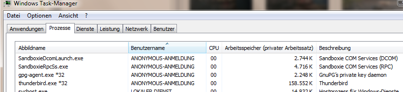 Rufe ich aus dem Admin-Konto via runas Tb+Enigmail mit den Benutzerrechten auf, streikt Enigmail, angeblich wird die gpg.exe nicht gefunden, Tb will erneut konfigurieren. Damit blockiert Tb komplett...