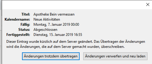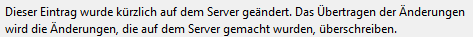 "Dieser Eintrag wurde kürzlich auf dem Server geändert. Das Übertragen der Änderung wird die Änderungen, die auf dem Server gemacht wurden, überschreiben".