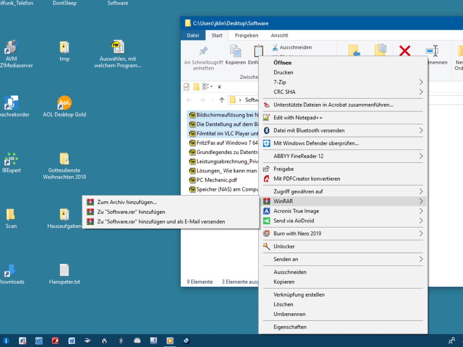 Ich will z.B. mehrere Datein im Ordner Software als winrar-Archiv per E-mail versenden.