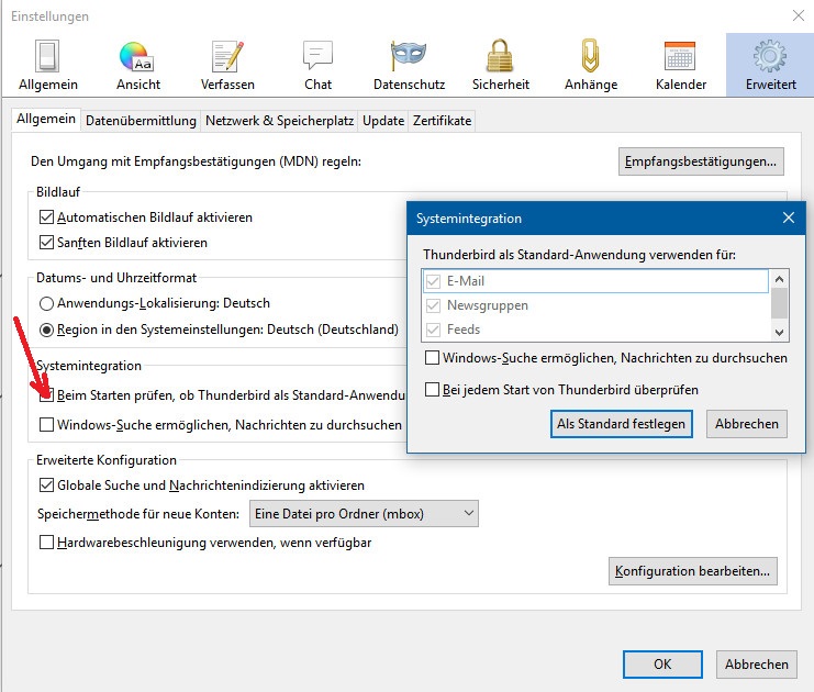 Wie kann ich erreichen, daß sich wie früher Mozilla Thunderbird zum Versenden des Archivs öffnet und nicht das nervige Outlook ?
