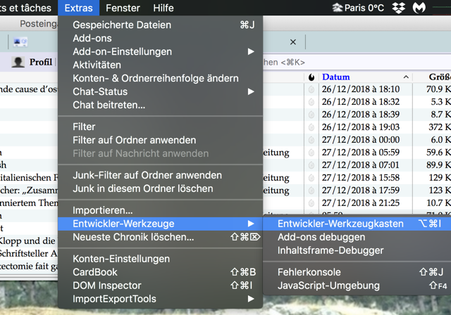 Das Menü "Extras" sieht in der Version 60.x.x jetzt (zumindest in der Mac-Version) so aus:
