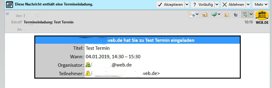 wenn die Termineinladung direkt aus einem Kalender kommt, sieht das bei mir so aus: