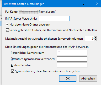Ordner des IMAP-Kontos abonnieren