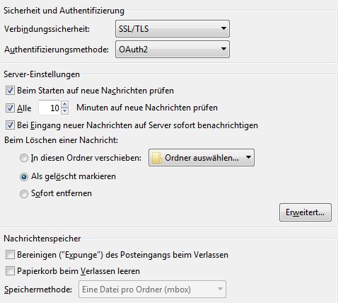 Einstellungen in TB wie von Gmail vorgegeben: