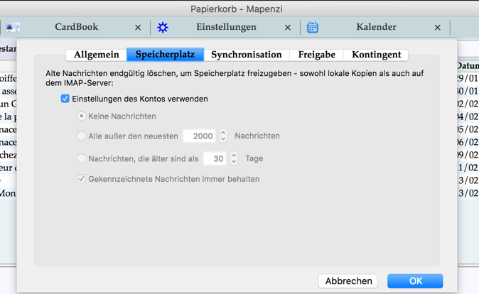 - Synchronisation & Speicherplatz: Alte Nachrichten endgültig löschen - sowohl lokal als auch auf dem IMAP-Server [Keine Nachrichten]