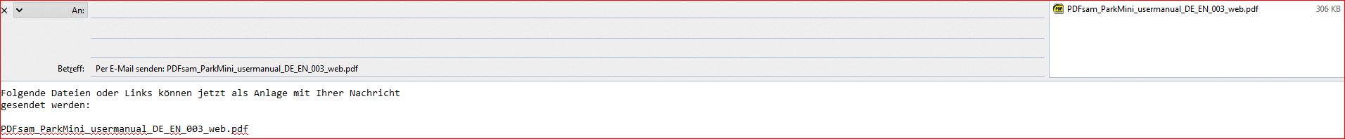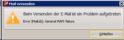Seit heute wird beim versenden der E-mails über Senden an → E-Mail-Empfänger" (Windows MAPI-Schnittstelle) mit "Datei → Senden an → E-Mail-Empfänger" (Windows MAPI-Schnittstelle)
