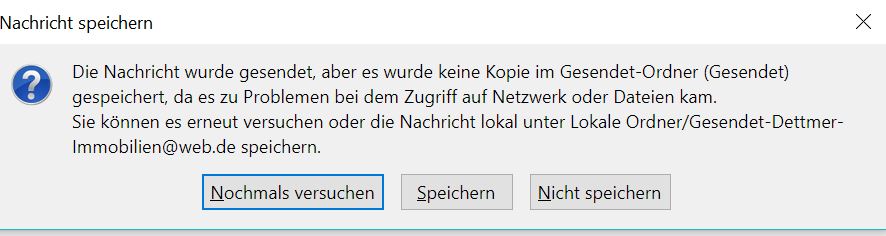 Dann sehe ich bei 2 WEB-Konten mit unterschiedlichen Namen, dass bei Name des Ordners: 1 x Gesendet steht und 1 x SENT. Kann hier auch ein Fehler vorliegen? denn bei dem Postfach mit "SENT" geht alles ordnungsgemäß nach Versenden der Mail auch als Kopie in Ordner" Gesendet", nur bei "GESENDET" geht es nicht in den Ordner: Gesendet" sondern ich muss ihn unter "Lokalen Ordner" abspeichern.