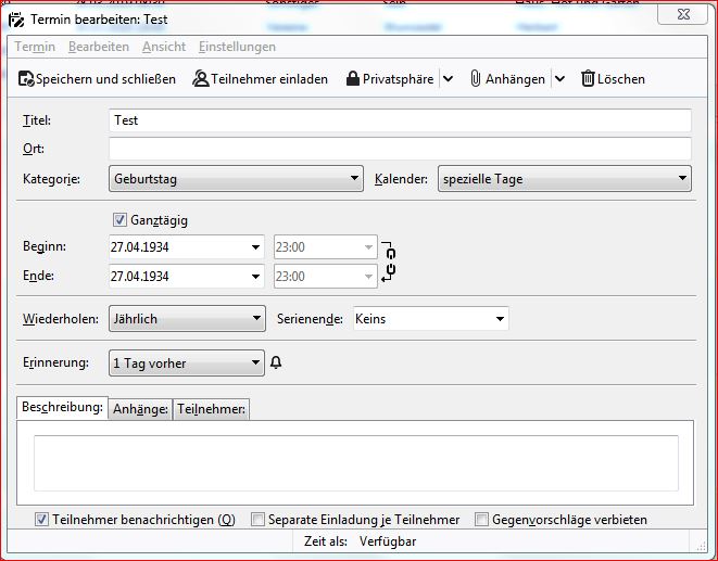 Wollte einen Geburtstag anlegen, siehe Screenshot, aber eigentlich 28.04.1969, klappt auch nicht mit dem 28.04.1934.