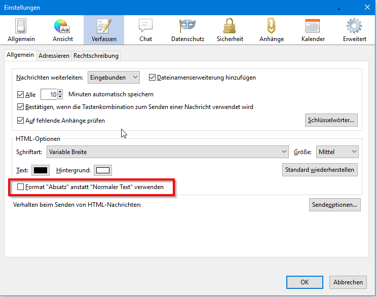 Mein TB schaltet bei "Antworten" um auf "Absatz" und wählt damit auch gleich die Schriftart "Times New Roman serif", anstatt der von mir vorzugsweise genutzten (und auch so eingestellten) "Helvetica, Arial". Als Standardschriftart steht bei mir unter Einstellungen "Arial".