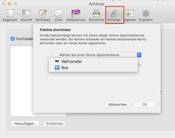 Mein Problem: Thunderbird warnt mich beim Versand großer Anhänge und empfiehlt, Filelink zu verwenden. Täte ich ja auch gern, ABER: