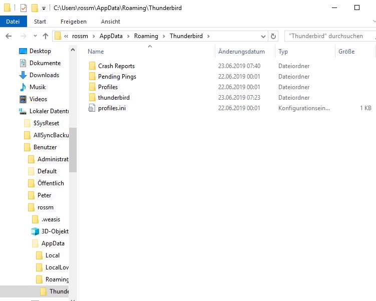 Hier geht es darum, dass der thunderbird weg war, ich habe von einer Datensicherung von Allsync den Thunderbird in ein anderes Verzeichnis kopiert, jetzt wollte ich meine profile wieder haben, findet der PC nicht thunderbird-p wird nicht gefunden. Ich habe jetzt den neuen thunderbird installiert dasselbe Problem, das alte Profil ist ja da, aber ich komme nicht dran?