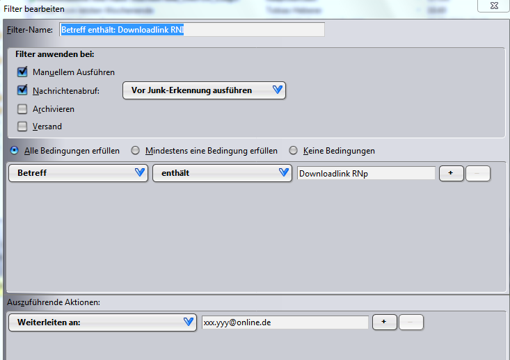 Alle anderen, früher angelegte Filter funktionieren einwandfrei, nur der neue Filter nicht.