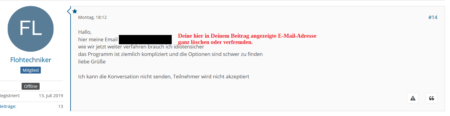 Keine Forenhilfe per Konversation!