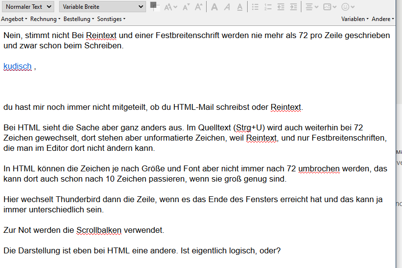 Hier wechselt Thunderbird dann die Zeile, wenn es das Ende des Fensters erreicht hat und das kann ja immer unterschiedlich sein.