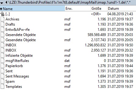 In den Ordnern INBOX (1,296 GByte) und gesendete Objekte (589 MByte) ![]()