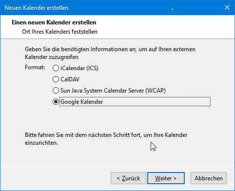 • Google-Kalender mit "Provider for Google-Calendar" (ja/nein): weiß nicht