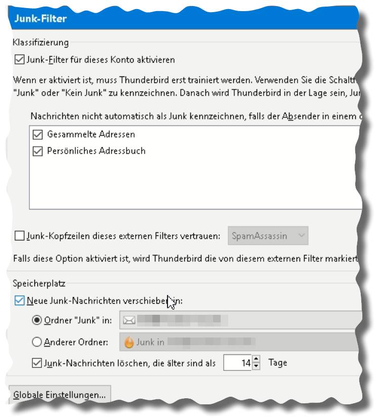 • Alle Nachrichten in Junk Ordner auch ohne Filter