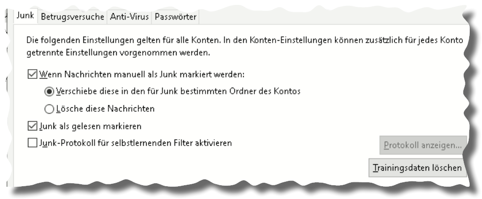 Ich habe das Junk Filter - Trainingsdaten gelöscht