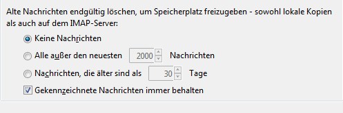eine Frage bitte zum automatischen Löschen, ausgehend von Thunderbird.