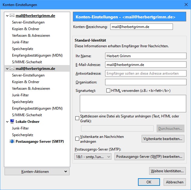 1. In Thunderbird (und eigentlich fast ausschließlich) verwende ich nur eine E-Mail-Adresse: