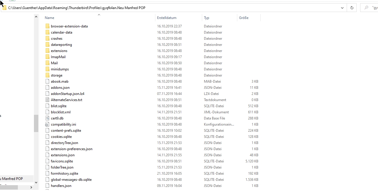 in keinem der gezeigten Profilordner befindet sich eine Datei abook-1.mab, die deinem "Adressbuch" entspräche. Nun könnte es aber sein, dass es sich bei "Adressbuch" um ein importiertes Adressbuch handelt. Dessen Datei im Profil müsste dann impab.mab heißen, leider kann man das nicht sehen, denn der Screenshot des neuen Profil endet bei handlers.json....