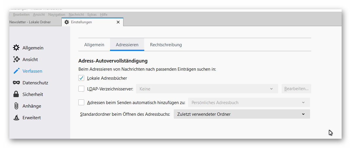 Zur Sicherheit lege ich mir noch ein Adressbuch als Export an (Name frei wählbar) unter Dokumente - damit kann ich dann auch meine Adressbuch beim Web-Provider mit dem Adressbuch von TB synchron halten.