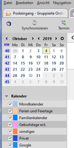 Du hast doch im Kalender-Fenster auf der linken Seite oben den Mini Kalender und darunter Deine Kalenderliste.