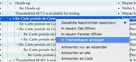 • mache einen R-Klick auf die betreffende Mail des Kunden, auf die du geantwortet hast, und wähle "Im Themenbaum anzeigen" im Kontextmenü