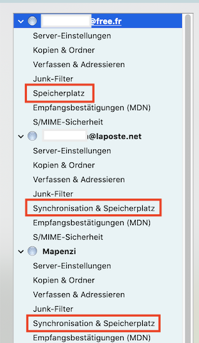 In den Konten-Einstellungen >> %Kontenname% haben POP-Konten eine Einstellung "Speicherplatz" während sie bei IMAP-Konten "Synchronisation & Speicherplatz" heißt: