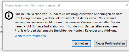Oder kapiert Thunderbird, dass alles bereits DA ist und er nur an den 2 Stellen Änderungen wg. der Version vornehmen muss?