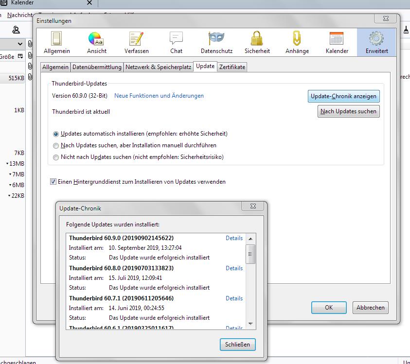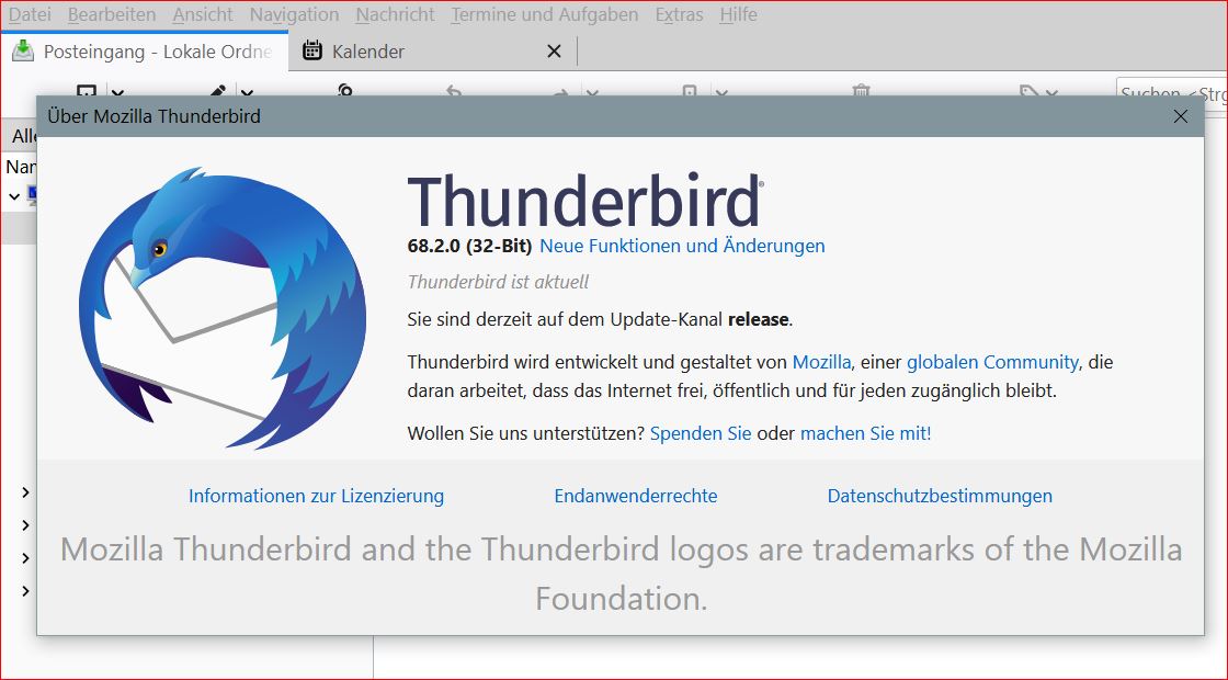 - Thunderbird-Version: 68.2.0 / 60.9.0