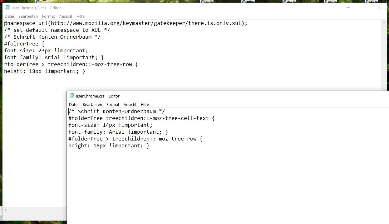 seit dem jüngsten Update für Thunderbird für Mac auf Version 68.2.1 ist die Schrift der Ordnerliste auf der linken Seite praktisch unlesbar klein geworden. Früher konnte man mit dem "Theme Font und Size Changer" diese Schriftgröße ganz einfach ändern. Das hat Mozilla ja leider unterbunden