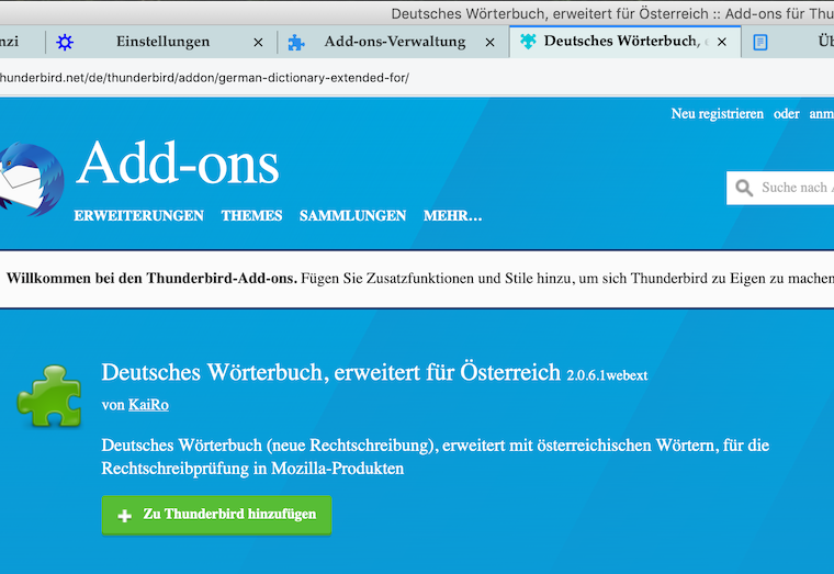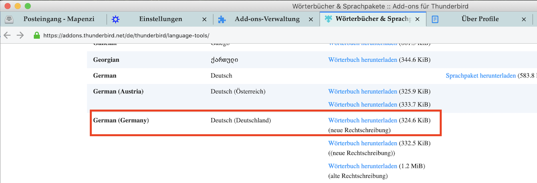 Ich habe aufgrund der Hinweise im Forum mehrere Versuche unternommen, das richtige Wörterbuch herunterzuladen.