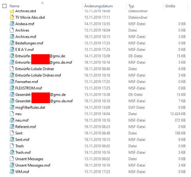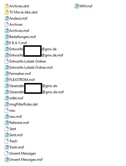 Bitte erstelle einen Screenshot mit dem Inhalt des Ordners "Local Folders" (Menû Hilfe > Informationen zur Fehlerbehebung > Profilordner > Ordner öffnen, TB beenden und im Profilordner xxxxxxxx.default nach ..\Mail\Local Folders\ gehen)
