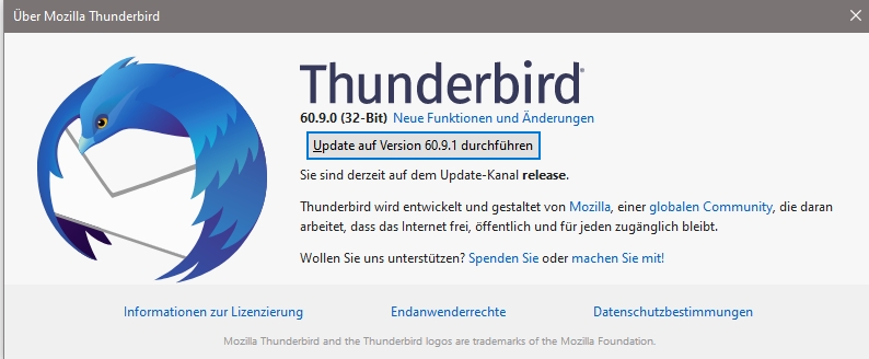 - Thunderbird-Version: 60.9.1 (32-Bit)