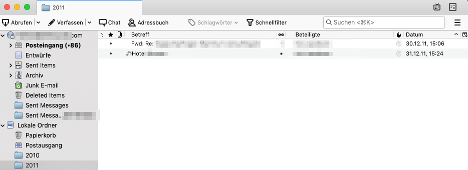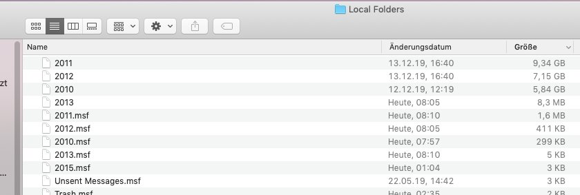 Die entsprechenden Ordner auf der Festplatte enthalten allerdings Gigabytes an Daten. Wie kann ich die Mails sichtbar machen?