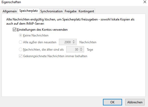 - Alle Einstellungen, dass E-Mails nicht automatisch gelöscht werden sind für mein Empfinden immer getroffen worden, Screenshots habe ich angehängt. Auch in iOS ist vermerkt: "Gelöschte E-Mails Entfernen: Niemals" (da ich weiß, dass man hier 1 Tag, 1 Woche, 1 Monat wählen kann.)