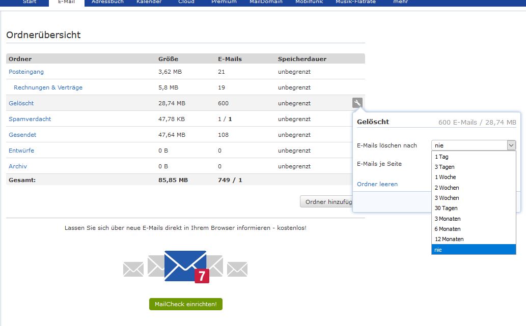 - Postfach-Anbieter (z.B. GMX): GMX