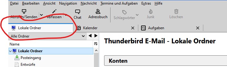 Ich habe T-Bird zusammen mit Lightning installiert. Dummerweise habe ich es irgendwie fertig gebracht, das Fenster/den Tab mti den Mails zu schließen.