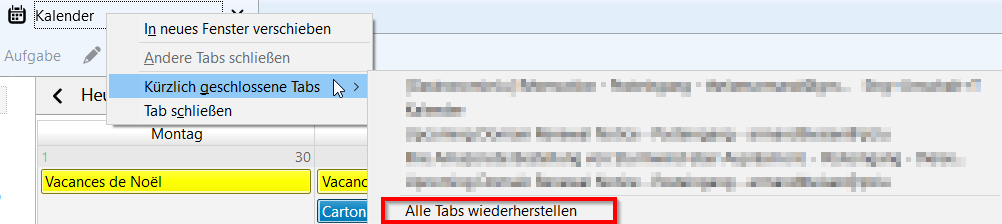 Jetzt bekomme ich die Mails nicht mehr zu sehen und finde das Fenster/den Tab nicht und auch nicht, wie ich es wieder einschalte oder sichtbar mache.